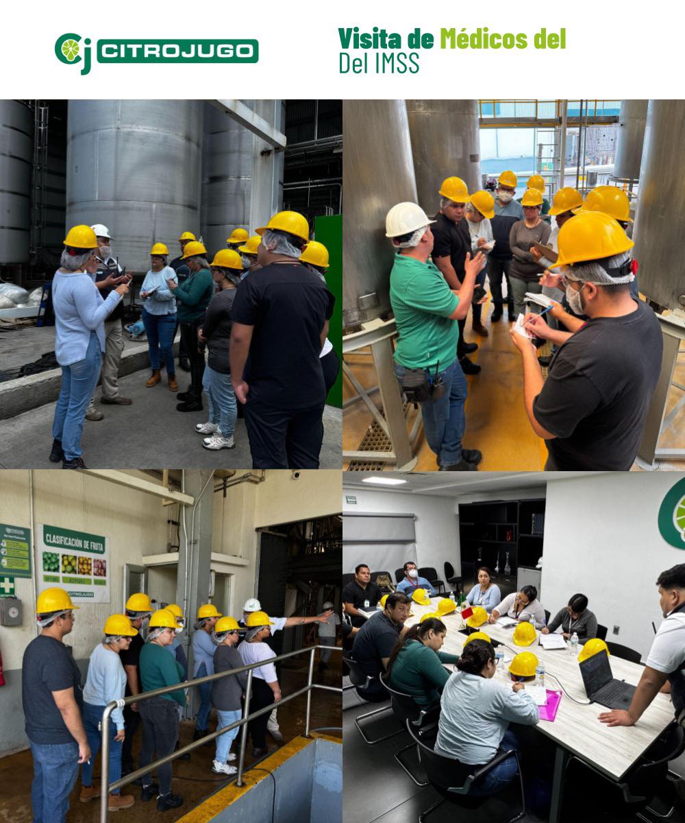 La seguridad y el bienestar de las personas son pilares fundamentales en cualquier entorno laboral. En ese contexto, Citrojugo recibió con agrado la visita de médicos del IMSS que actualmente cursan la especialidad en Salud y Seguridad en el Trabajo, interesados en conocer de primera mano cómo se gestionan estos aspectos dentro de una operación industrial.
